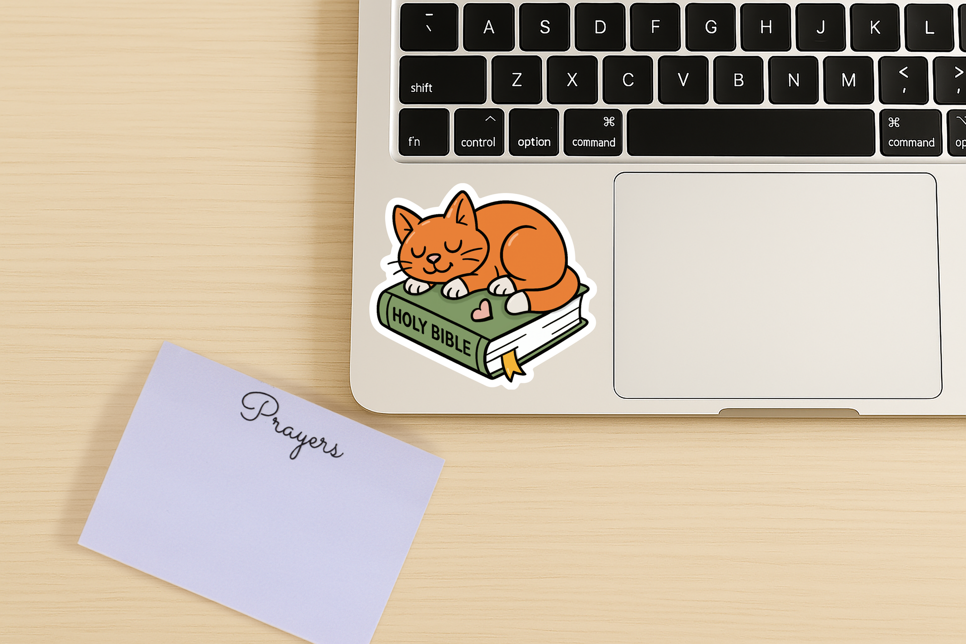 Orange Cat on Bible Waterproof Vinyl Sticker