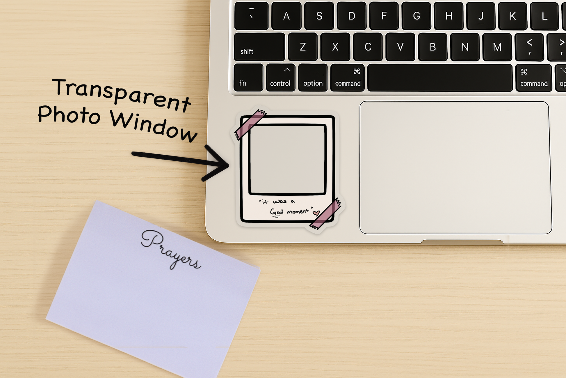 A creative transparent vinyl sticker designed to work like a tiny Polaroid frame, perfect for highlighting moments that feel unmistakably God-given.